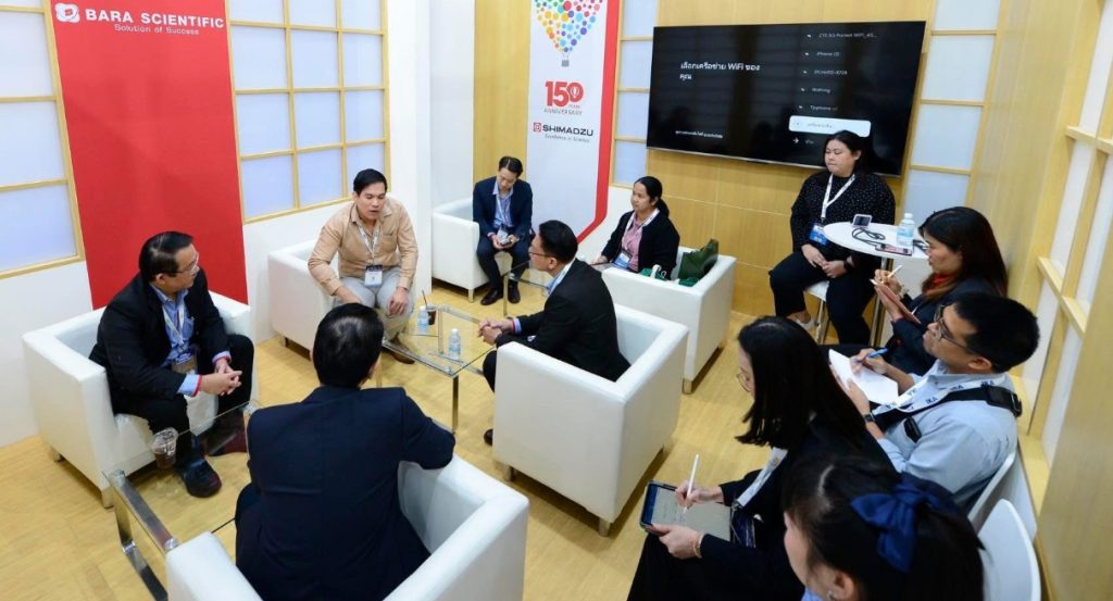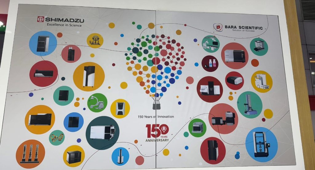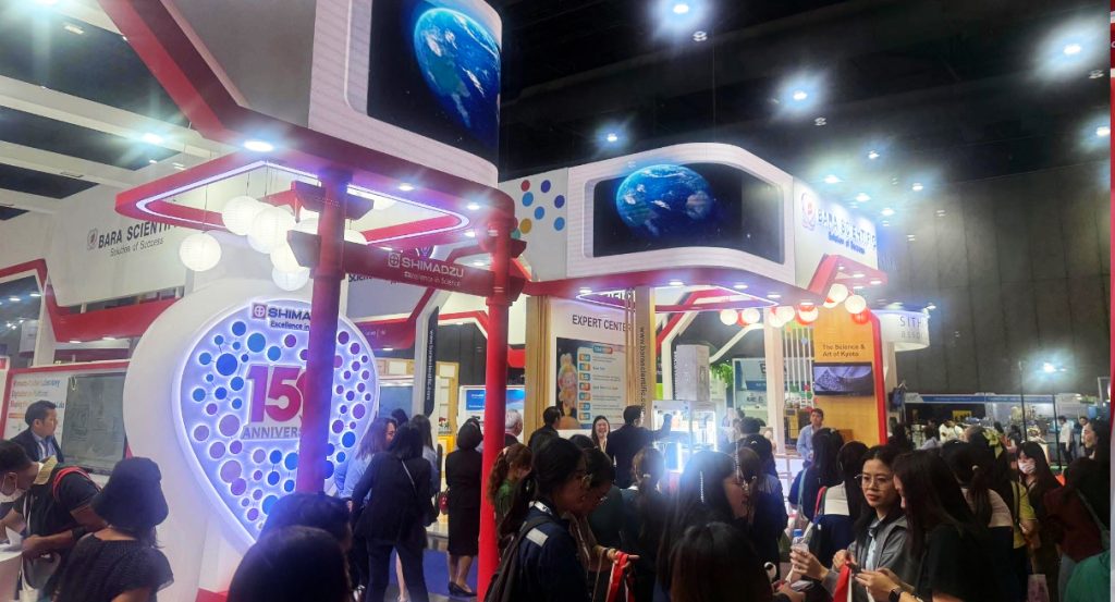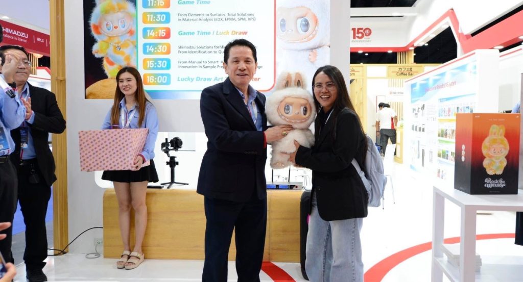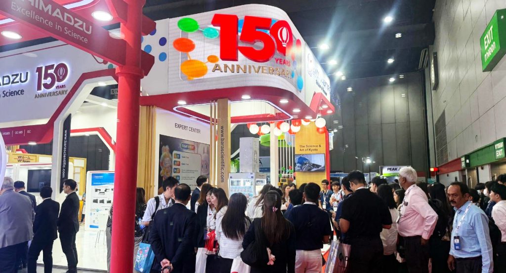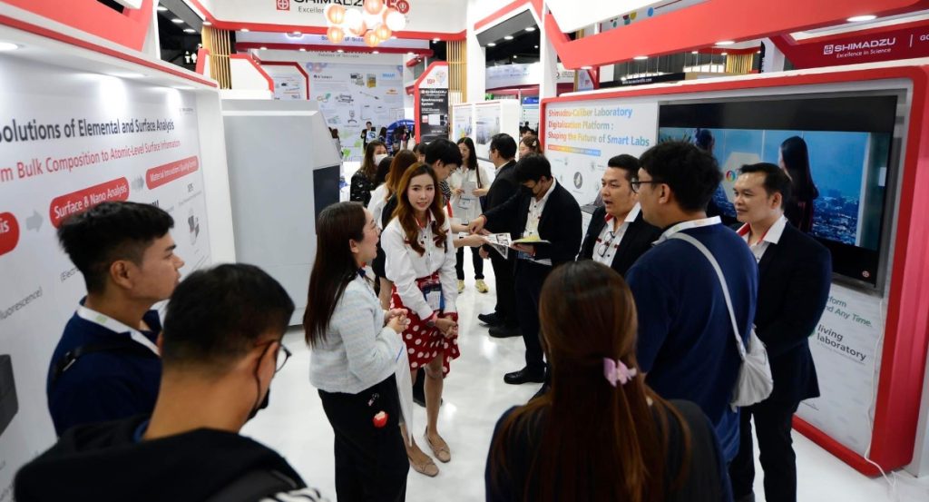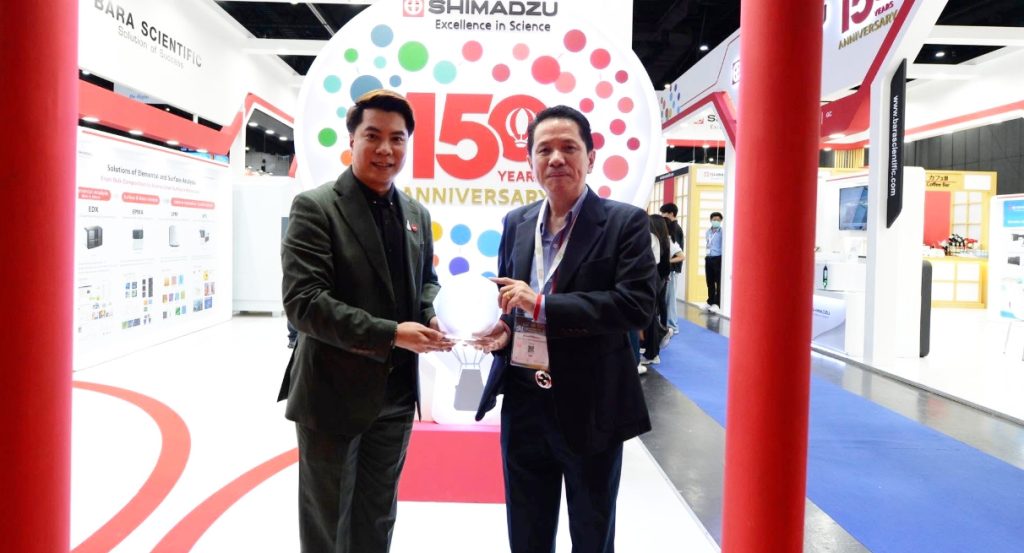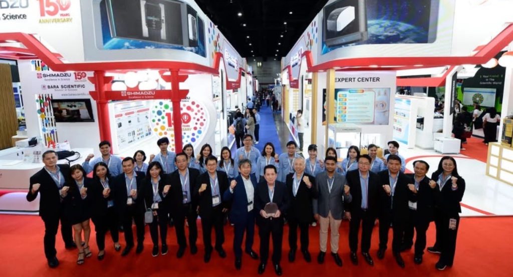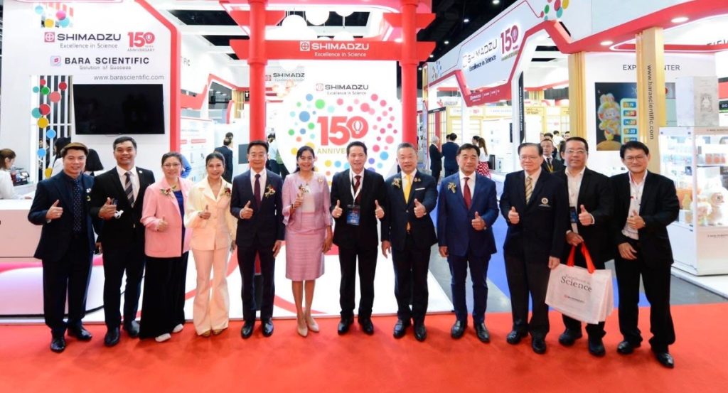ในงานนี้ บริษัทได้ร่วมหนึ่งในกิจกรรมเฉลิมฉลองการก่อตั้ง Shimadzu ครบรอบ 150 ปี : 150th Shimadzu Anniversary (1875-2025) โดยบริษัทได้นำ กลุ่มเครื่องมือวิเคราะห์วิจัย ในด้านต่างๆ มาแสดงในงานพร้อมทั้งมีผู้เชี่ยวชาญมาให้คำปรึกษากับผู้ที่สนใจ อาทิเช่น กลุ่มเครื่องมือวิเคราะห์วิจัยทางด้าน Future Foods, Functional Foods, Plant Based Protein, Biopharmaceutical, Advanced Health Care, Next Generation Automotive, Smart EE พร้อมทั้งเครื่องมือทดสอบที่รองรับงานวิจัยทางด้าน Carbon Neutrality และ กลุ่มเครื่องมือที่สามารถรองรับงานวิเคราะห์วิจัยทางด้าน BCG (Bio Economy,Circular Economy และ Green Economy) และ ระบบ Software ควบคุมระบบการวิเคราะห์ทั้งระบบในลักษณะ End-to-End Workflow ซึ่งให้ความสะดวกรวดเร็ว ทันสมัย รองรับกับการทำ Digital Transformation ของห้องปฏิบัติการ QA/QC และ R&D ของหน่วยงานทางราชการและภาคอุตสาหกรรมชั้นนำต่างๆของประเทศ เพื่อร่วมเป็นส่วนหนึ่งกับความสำเร็จของกลุ่มลูกค้าผู้มีพระคุณดังกล่าว สมตามปรัชญาทางธุรกิจของ Shimadzu “Contributing to Society through Science & Technology” ซึ่งงานดังกล่าวนี้ได้รับความสนใจจากผู้เข้าร่วมชมงานทั้งในประเทศและต่างประเทศเป็นอย่างดี