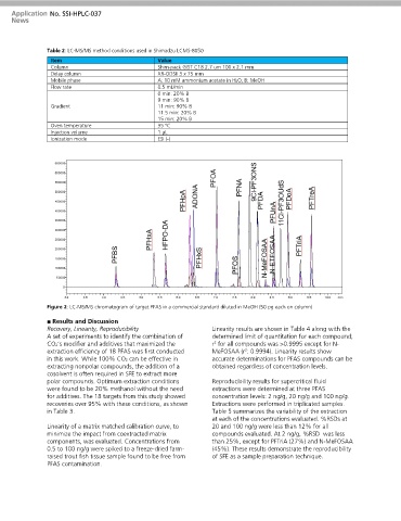 extraction efficiency of 18 PFAS was first conducted MeFOSAA (r : 0.9994). Linearity results show