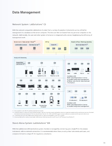 function, the system is capable of sample dilution, automatic With the LabSolutions DB stand-alone system, the data is managed by connecting just a single PC to the analysis